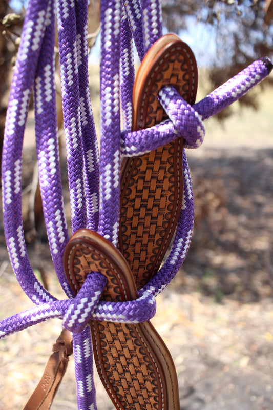 Purple/White Split Reins with Slobber Straps (6.5ft)