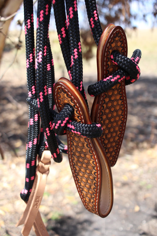 Black/Pink Split Reins With Slobber Straps (6ft)